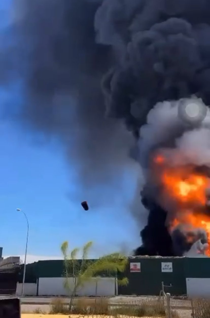 De momento la Junta ha activado el dispositivo de emergencia y se han evacuado los polígonos ante el peligro por objetos que continúan explotando y saltando por los aires y que están afectado a otras naves colindantes.