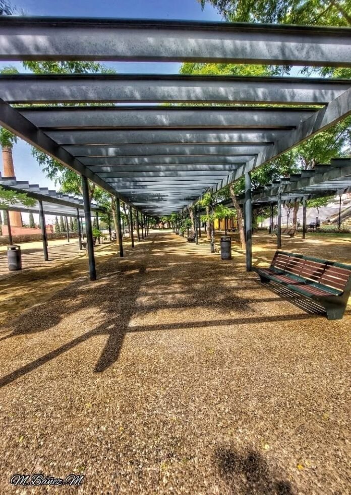 El Ayuntamiento ha iniciado una actuación en el Parque Centro de Alcalá de Guadaíra para mejorar la comodidad y el disfrute de uno de los espacios más frecuentados por los vecinos y vecinas de la ciudad. En concreto, en la zona de pérgolas junto a los juegos infantiles —con una superficie aproximada de 750 metros cuadrados— se han instalado toldos con el objetivo de ampliar la sombra disponible sobre el paseo donde se encuentran los bancos.