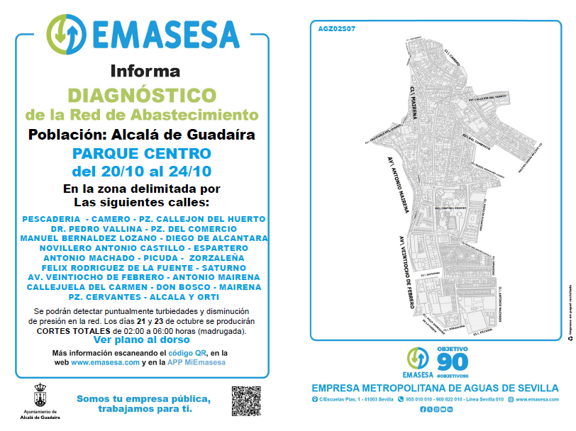 Emasesa comunica que desde hoy habrá incidencias en el suministro de agua por diagnóstico de la red de abastecimiento en la zona Parque Centro en #AlcaládeGuadaíra