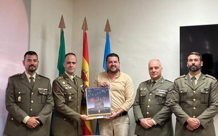 El delegado de Gobernación del Ayuntamiento, Pedro Gracia recibía ayer de manos del jefe del Batallón de Transmisiones III/22 del Ejército de Tierra, Vicente Rodríguez Polvillo, junto a otros mandos militares, el cartel anunciador de la ‘IX Edición del Camino de San Fernando’.