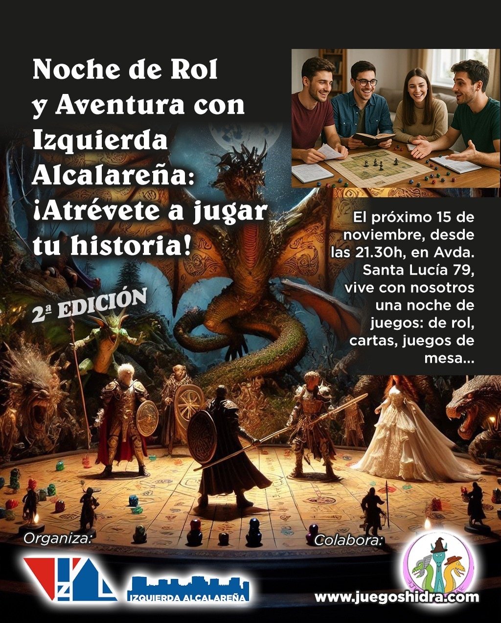 Izquierda Alcalareña anuncia la segunda edición de “La Noche de Juegos”, una iniciativa de ocio alternativo dirigida especialmente a la juventud alcalareña. El evento se celebrará el SABADO 15 de noviembre a partir de las 21:30 horas, en la Avenida Santa Lucía, 79.
