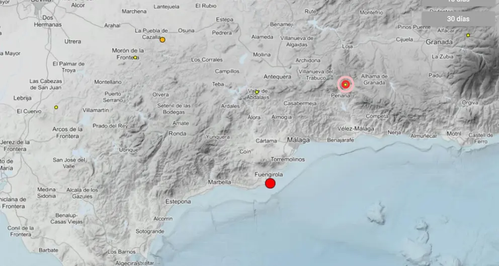 Un terremoto de magnitud 4,8 con epicentro en Fuengirola (Málaga) se ha sentido este viernes en varios municipios de la provincia de Sevilla, sin causar daños.