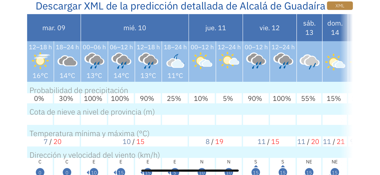 Tras el puente de diciembre en el que hemos tenido un tiempo estable y soleado, llega una nueva borrasca a nuestra ciudad. El miércoles 10 de diciembre será el primer día de la semana con precipitaciones, con un 100% de probabilidad de lluvia entre la medianoche y el mediodía, bajando después al 90% para el resto de la jornada. Las temperaturas serán algo más frescas, entre 10 y 15 grados.