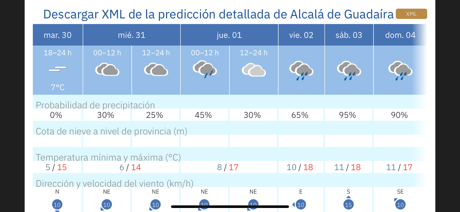 La madrugada del miércoles 31 se esperan intervalos nubosos y brumas matinales, tendiendo a levantar a lo largo del día. Las mínimas registrarán ligeros descensos. Durante la tarde, se aproxima la borrasca Francis, los cielos se irán cubriendo debido al acercamiento de este frente atlántico, sin descartar precipitaciones débiles en la parte occidental de la provincia.