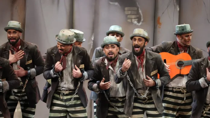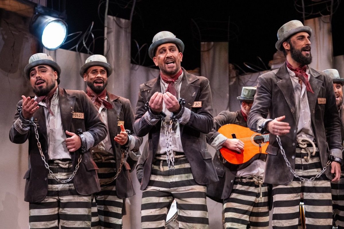 La comparsa de Ramón Zamudio firmó una actuación sólida y muy bien armada para cerrar la noche, dejando claro que el grupo llega al Falla con las ideas claras y un trabajo serio detrás. Desde el primer acorde de la presentación, con ese guiño tan bien traído a la mítica ‘Entre rejas’, el tipo de presidiarios funciona y conecta: culpables, sí, pero del “delito” de seguir cantando coplas a Cádiz. Una metáfora reconocible, valiente y muy comparsera.