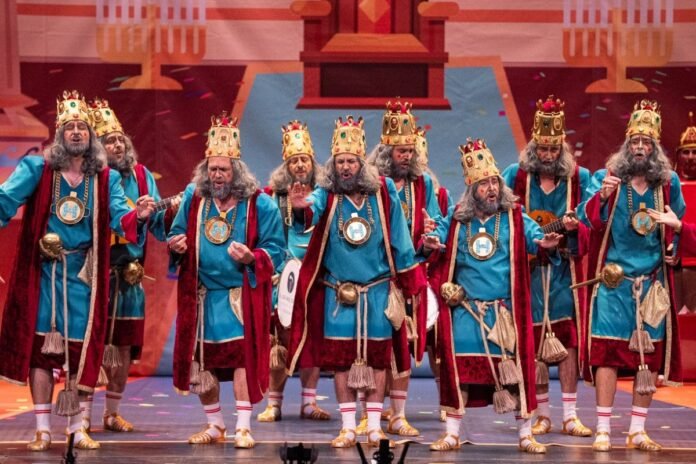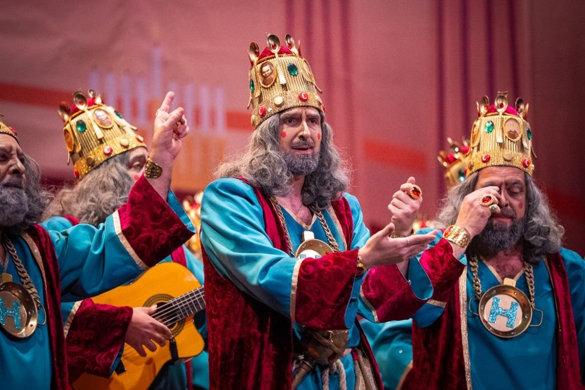La chirigota de Los Calvos llega al Gran Teatro Falla con una propuesta valiente y poco convencional al encarnar al rey Herodes desde una óptica contemporánea, trasladando su figura al universo de las guarderías y la infancia actual. El tipo, arriesgado por naturaleza, juega con el contraste entre uno de los villanos más oscuros de la tradición y la inocencia del mundo infantil, un choque que sirve de base para todo el repertorio.