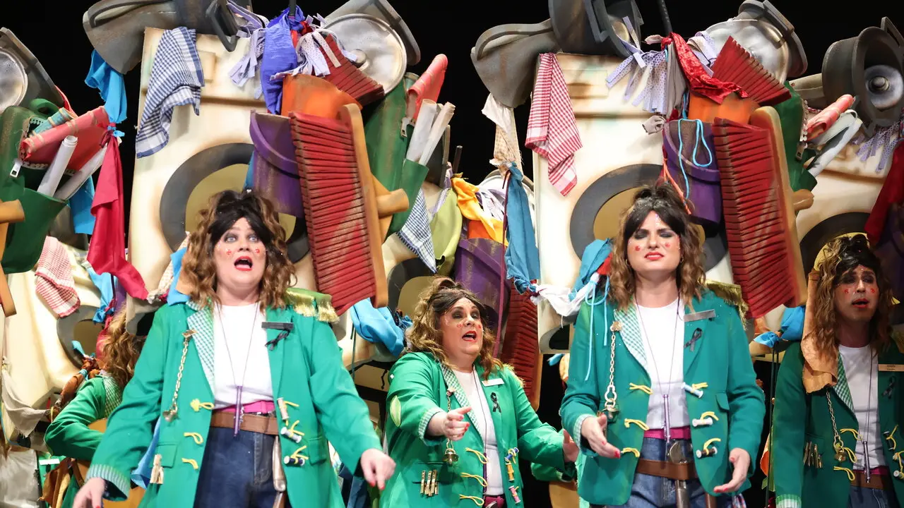 La comparsa de las Niñas de Alcalá de Guadaíra volvió a demostrar este año por qué es una de las voces más reconocibles y respetadas del Carnaval, llegando con Las jorobadas y sorprendiendo desde el primer momento por la originalidad de un tipo tan potente como simbólico. Con el peso de la casa a cuestas —literal y metafóricamente—, el grupo pone sobre las tablas una imagen clara y valiente de la carga física y mental que soportan muchas mujeres en su día a día, una idea necesaria en la sociedad actual y, lo que es más importante, bien defendida y ejecutada.