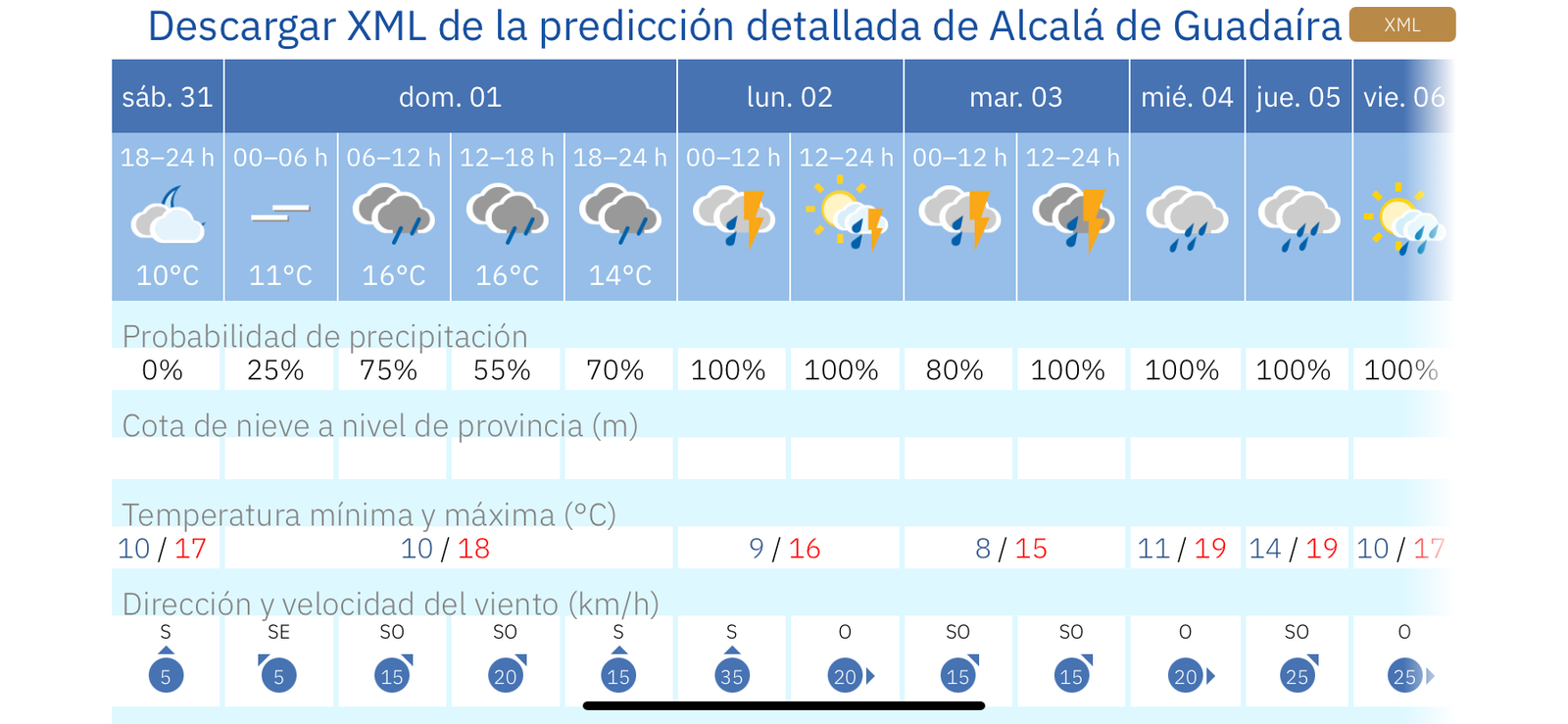 El resto de la semana tendremos lluvias del 100 % en la localidad con variaciones leves de temperaturas.