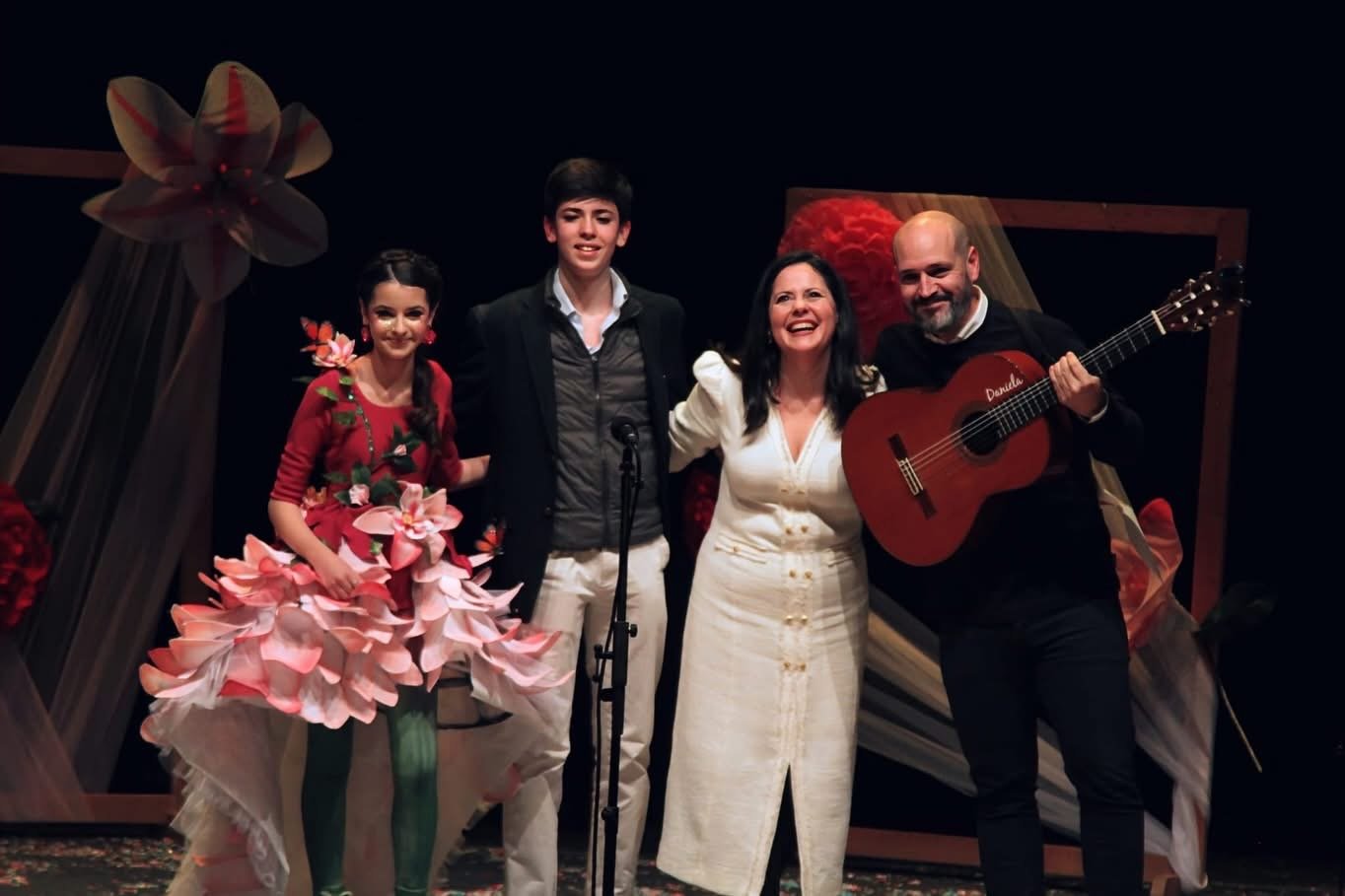 El pregón vivió instantes cargados de emoción como cuando subieron al escenario sus padres y sus hermano y todos cantaron juntos, sellando una imagen familiar que emocionó a los presentes.