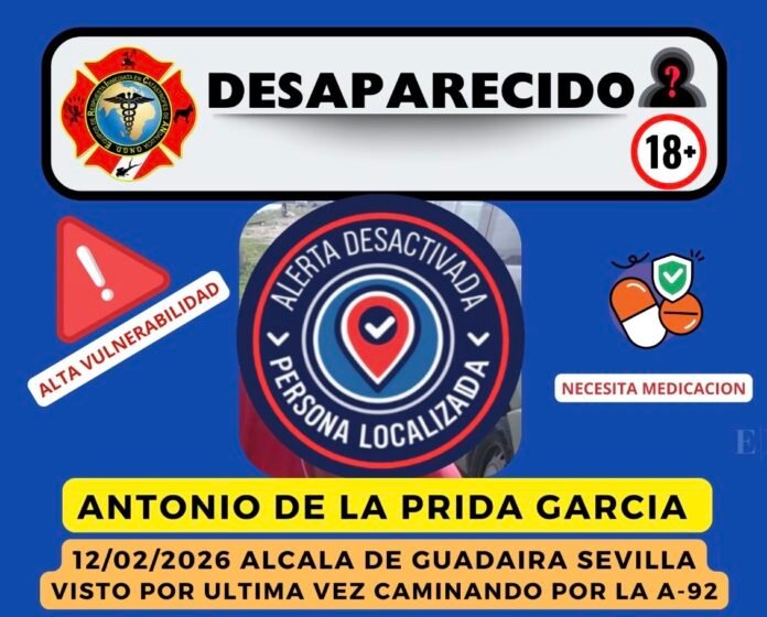La Policía Nacional ha comunicado este miércoles un nuevo aviso por la desaparición de Antonio de la Prida García, vecino de Alcalá de Guadaíra, cuya desaparición ya había sido denunciada con anterioridad y que llegó a ser localizado en Arahal.