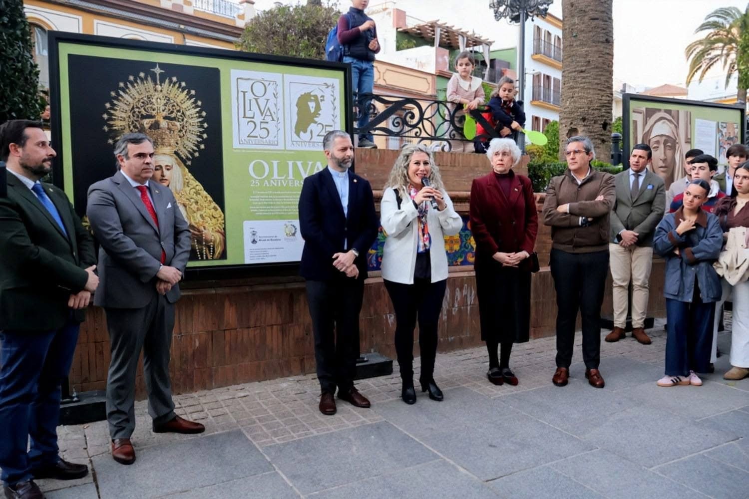La muestra urbana al aire libre “Oliva 25 Aniversario” se inauguró este jueves 26 de febrero en La Plazuela de Alcalá de Guadaíra, donde permanecerá instalada hasta el próximo 25 de marzo.