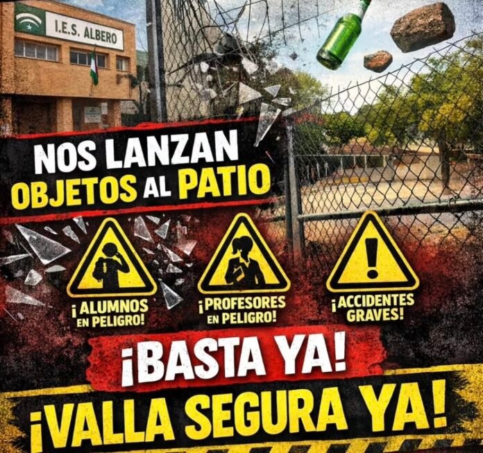 Padres, alumnado y profesorado del IES Albero han denunciado públicamente una situación que consideran intolerable y que refleja, una vez más, la preocupante falta de civismo y educación de quienes protagonizan este tipo de actos. Según han trasladado a través de redes sociales, se están produciendo lanzamientos de piedras y otros objetos, poniendo en riesgo la integridad de quienes se encuentran en el patio.